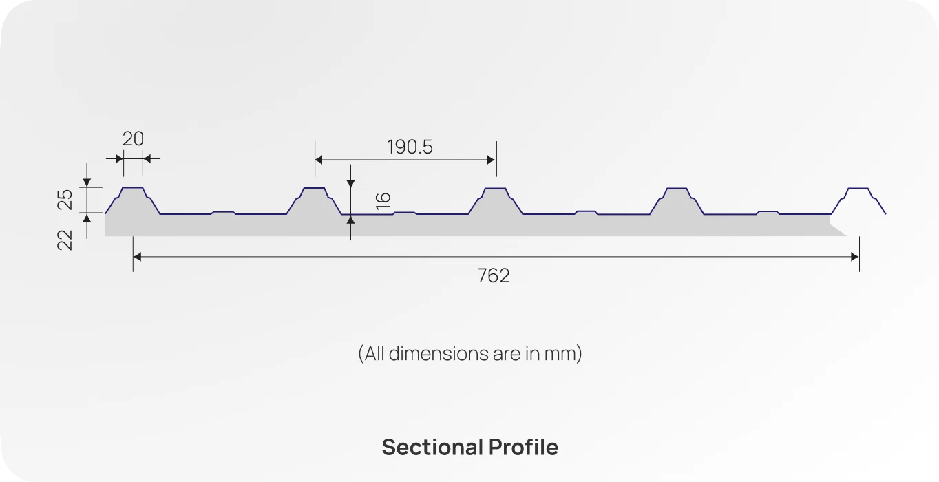 The TH PU Foam PVC Paper Deck 762 is a durable roofing solution made from Zincalume® Steel, offering superior longevity with customisable thicknesses and slope configurations to suit various project needs.